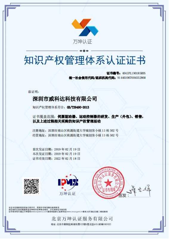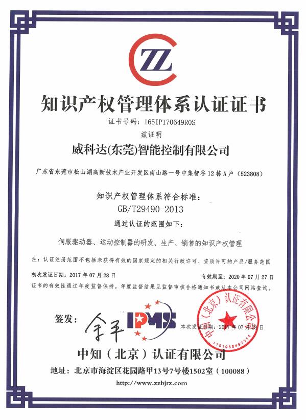 知識產權管理體系認證證書