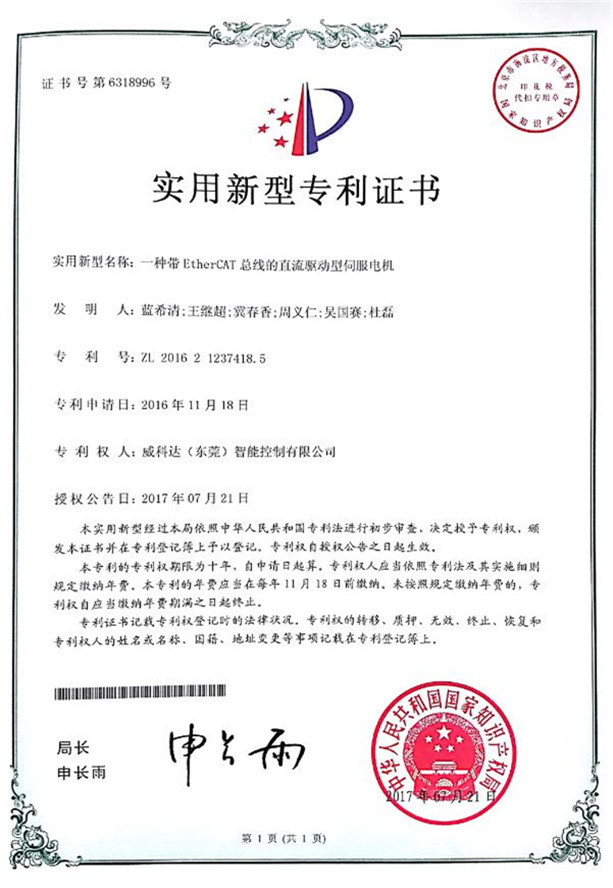 一種帶EtherCAT總線的直流驅動型伺服電機